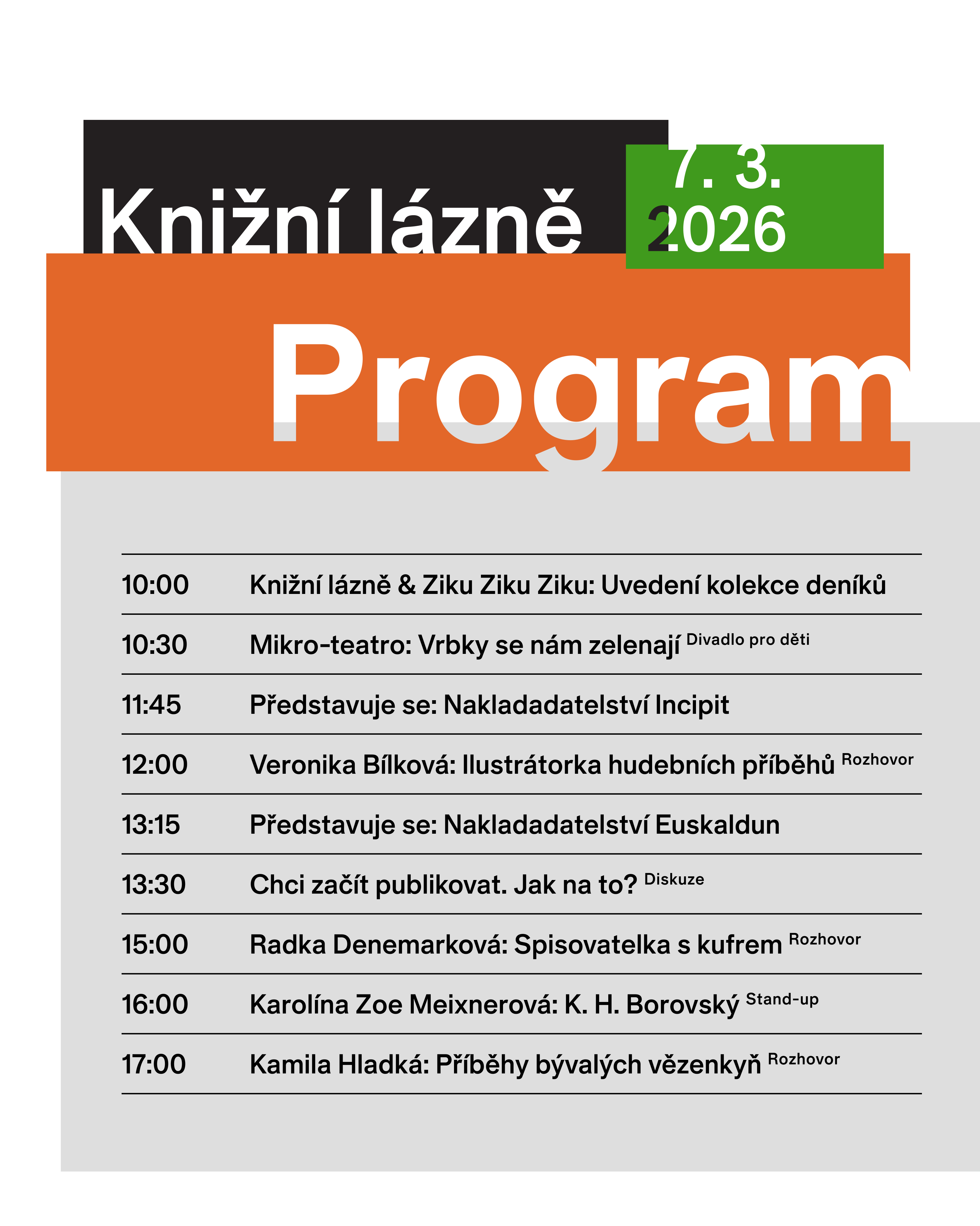 Spolu se společností Magnesia vás zveme na další ročník Letní školy psaní, ve které nabízíme prostor začínajícím autorkám a autorům. Pro vybrané uchazeče a uchazečky připravujeme tři intenzivní kurzy se zkušenými profesionálkami, které nabídnou individuální reflexi k vaší tvorbě, a zajímavý program Knižních lázní. Uzávěrka přihlášek je 15. 5. 2026. Přihlášku najdete ZDE.